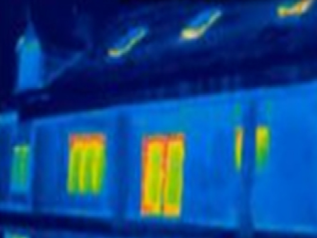 A house made with sips eco panels. Thermal imagery shows energy loss through the windows but not the wall system.